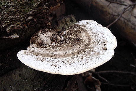 クジラタケやアラゲカワラタケなど、外見がよく似た白っぽいきのこが多いが、管孔面に同定のポイントになる特徴がある。