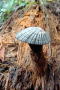 里山の尾根にはきのこが見つかりそうにもないので、種々の雑誌やガイドブックを頼りに湿原のある森林公園を探してみた。・・・で、狙いをつけたのがここ。平塚市からは少し遠いが、行ったことがないのでシーズン前の下見も兼ねることにした。 結果はやはりほとんどが堅いきのこで、どうしても華やかさに欠ける。大きなコフキサルノコシカケがたくさん見られたが、中に面白い形のを見つけた。いったん生えた木が倒れて、その後もさらに成長したので、きのこが十字型になっている。 柔らかいきのこでは唯一、エノキタケを見つけられた。枯木の地面すれすれの所から生えていたので、もう少しで見過ごすところだった。あとはカリカリに乾いたハナビラニカワタケがあったので、持ち帰って水で戻してみることにした。 |