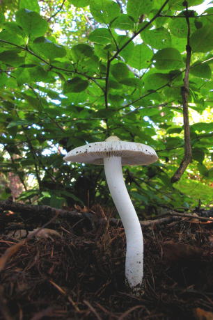 カサの表面はアセタケ属特有の繊維状が見られるが、このすべすべした純白の長い柄はたいへん印象に残る。正直なところアセタケの仲間は判定が難しいこともあって苦手だが、このきのこはたいへん好きになってしまった。