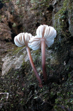 もうカサが反り返っているが、柄はまだきれいな桜色をしている。これはこれで面白いスタイルだ。木の洞の中にも数本あったが撮影不可能だった。