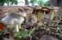 いつもホットな情報をいただいている「神奈川キノコの会」の中島氏から、いろんなタイプのアミガサタケが一つの公園内に出ていると聞き、案内していただいた。氏は近年、アミガサタケの分類に少なからず疑問を持ち、発生環境や生態的な成長過程を精力的に追跡しておられる。 この公園にはずい分大きなイチョウの木があり、早春に出るトガリアミガサタケに限らず、多くのタイプのアミガサタケがイチョウの樹下を好むらしい。まず、頭部が灰色がかったチャアミガサタケのようなタイプ。少し盛期は過ぎてしまっている。 大型の鮮やかな黄色タイプもたくさん出ていたが、驚いたのはその発生場所だ。岩や溶岩を積み上げた急斜面の岩の間から、高さ10〜15センチにもなる大きなアミガサタケが群生している。斜面にイチョウの木はないが、遊歩道を挟んだ斜面の上に大きな1本がそびえ立っている。氏の仮説では、雨水によってイチョウの成分が岩の間から染み出しているのではないかとのこと。アミガサタケのこんな写真が撮れるとは思ってもみなかった。 ウッドチップを敷き詰めた緩やかな傾斜地では、これこそ普通のアミガサタケだと思われるタイプが出ていた。 おかげで面白い写真を撮ることができた。さらにアミガサタケに興味のある方は、氏の個人サイトhttp://naknak1.hp.infoseek.co.jp/index.htmlを覗いて見ることをお勧めする。 |