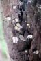 神奈川県で「鷹取山」と言えば、厨子と横須賀の市境にある山だと思う人が多いかも知れないが、実は平塚市の西のはずれにも鷹取山がある。その昔、鷹匠が鷹を取ったという名前だから、神奈川に限らず全国各地にあるのだろう。 山頂に古刹「鷹取神社」がある。山上にある神社となれば当然、シイやタブなどの古木がたくさんあるはず。・・・と考えて、短時間だけ「きのこ探索」をしてみた。 狙い通り、タブの巨木が切り倒されて朽ちている。そしてその空洞になった内側などに、マユハキタケがたくさん生えていた。どれも数ミリから1センチまでの小さなものが多いが、その数はまるでゴマ粒を降りかけたようなおびただしいものだった。 そして、これも狙い通り大きなスダジイが何本も立っている。当然この時季はスダジイを見つけると、その根回りを一周して真っ赤なきのこカンゾウタケを探す。まだ少し早いようで、見つけたのは直径5〜6センチの幼菌と、さらに小さな赤い点だった。 明日にかけてまとまった雨が降るような予報だったので、この連休は最終日に期待できるかも知れない。 |