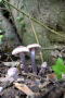 雨の予報だったのであまり広大ではない探索場所としてここを選んだが、駐車場に着いた頃から怪しい雲行きになってきた。手早く見つけて撮影だけを優先しようと探索開始。 せせらぎにかかった苔むした木橋に赤紫のきのこが束生していた。今度こそチシオタケだろうと少し傷つけて確認すると、赤い液がにじんできた。真冬の雪の中でも見られる通年生えるきのこだ。 撮影中にもう雨が降り出してしまった。うかつにも傘を積んで来なかったので、一旦車へ避難。しばらくして空が明るくなり、雨が止んだので探索再開。 地面から小型のきのこが生えていた。明るい褐色でカサが開いたものは周縁が裂けている。ツバはなくてヒダが暗灰褐色をしている。やや小型過ぎる気もするがこれはツバナシフミヅキタケではないかと思う。これと言った決め手に欠けるきのこなので同定が難しい。 そして再び撮影中に雨。しかも、とうとう本降りになってしまい、ついに探索を断念した。しかし、気温のあまり下がらない雨はきっといい結果を生むだろう。 |