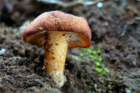 高さは約2センチ。ツバはなくヒダは白くて粗い。このまま大きくなったイメージを考えるのだが、似たきのこに結びつかない。
