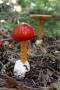 新聞によると今日6日は東京では、屋外で運動をしてはいけないことになっている。8月に入って「熱中症」で倒れる人が増え始めたため、気象協会が出した予防情報だ。 そこで午前中だけ近い場所を歩くことにして、7時に外へ出るともう息が詰まる暑さだった。なるべく木々の多い場所と考えて高麗山の子供の森へ向かった。 ようやく夏きのこの代表(?)ドクツルタケがたくさん出始めた。幼菌から老菌まであちこちに生えているが、よく見るとツバの形にずいぶん差がある。すべてが同種かどうかは検鏡しないと分からないが、ツバの出来方にはバリエーションがあるように思う。 大きなタマゴタケも数本見つけたが、これはカサを開き切った成菌ばかりだった。所どころ裂けた赤いカサにくっきりと条線が並ぶ。華やかさと言うより濃厚な美しさを持っているように感じる。 もう1箇所、霧降の滝の道も歩いてみたが、ここもすぐに見つかるのはドクツルタケとタマゴタケだった。引き返そうとした時、鮮やかな黄色いカサを見つけた。 枝が邪魔をして曲がりくねって生えていたが、カサにははっきり条線が見える。キタマゴタケかと思ったが中央に突き出た小山がない。それに表面に黄色い粉を付けている。ツバは膜質で上下両面とも濃い黄色、柄には段だら模様がない。そして、ヒダが真っ白だ。いろいろ考えたが結局分からない。外見的特長が当てはまる種類は図鑑にも見当たらなかった。 午後は「Gallery」のページを作ることにした。 |