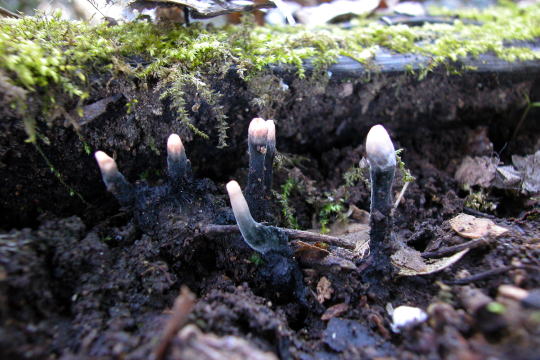 カノツノタケの幼菌かと思っていたのだが、先端の色が灰色ではないので別種だろうか。気にかけてはいるがこれ以上あまり成長してくれないので、ひょっとするとこれで成菌かも知れない。