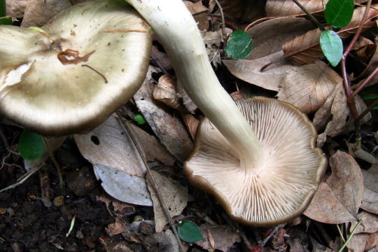 ヒダは初め白いがやがて胞子が成熟してピンク色を帯びてくる。これは食菌ということだが、梅雨ごろには有毒でそっくりのクサウラベニタケも出るので要注意だ。