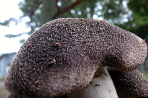 昨日の夕刻に採取された1本の柄が簡単にポキポキ折れる。新種のベニタケか?・・・と、残りのきのこを確認に来たが、クロゲシメジそのものだった。