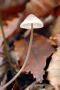 今日が冬至で最も昼間が短いということだが、季節はこれからが本格的に冬になる。今日の高麗山は南風が強くとても暖かい。何か目新しいものに期待して尾根筋を歩いてみたが、上着を脱いでも汗が出るだけで何一つ見つけられなかった。こうなるとやはり残る手段は「地獄の徘徊」しかない。 ところが今日は頼みの地獄沢でさえ「不況」の真っ只中で、極小菌のスケールでも被写体は見つからない。撮影できたのは、ようやく顔を見せ始めたニガクリタケだった。それならいっそのこと・・・と、ニガクリタケを積極的に撮ってみた。 「たかがニガクリ、されどニガクリ」・・・最初は切り株の根元でユリワサビをバックに。次は倒木に生えた柄の長い幼菌。そして、その近くにあったさらに小さな幼菌。 もう当分ニガクリタケを撮りたくなくなった。何でもいいから他のきのこが見たいものだ。 |