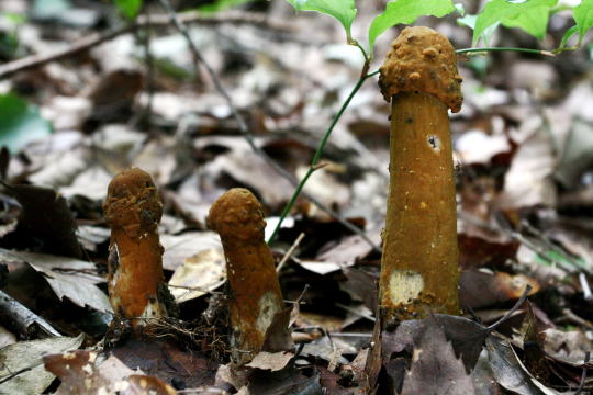 3本並んでいるタケリタケを初めて見た。メンバーの口々から「三兄弟」という言葉が出たが、なるほど本種だけに「兄弟」でしかあり得ない・・・と、だんだん話が妙な方向へ向かった。いや、白状すれば私が向かわせてしまった。