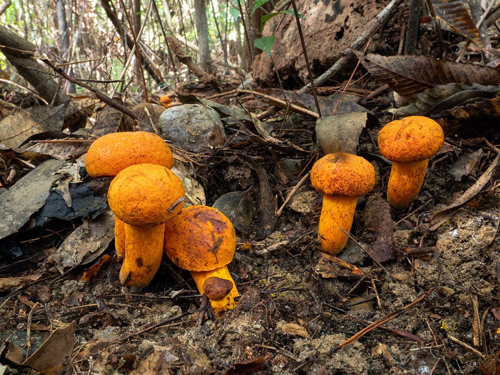今年の日本菌学会のフォーレは静岡県立森林公園で開催され当会のメンバーで案内役を務めたが、夏中サッパリだったきのこが一斉に出始めダイダイイグチも参加者の目を楽しませていた。
