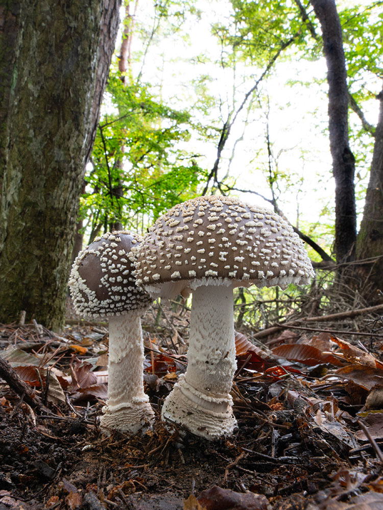雨滴があまりかからない場所に出ていたので鱗片が綺麗に残っていた。後ろの幼菌が少し残念だが・・・